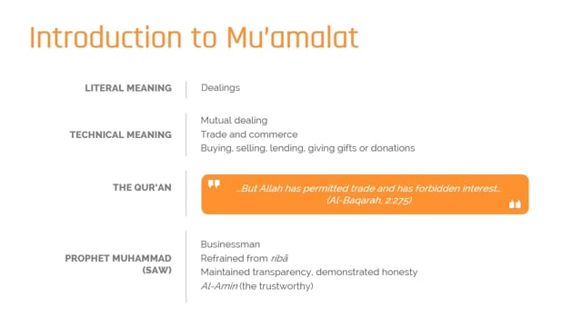 This module will provide you an overview of Shariah or Islam as a way of life. It starts with the definition of Shariah and further elaborates its four main characteristics. This will clarify why Shariah is so unique. Finally, the major components of Shariah are explained.